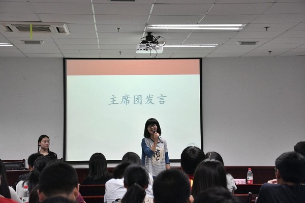 赵文俊学长作为上一届生食团学联的主席,对责任的担当深有感触。他表示站在副秘书这个不同的高度见识到了不同的风景,拥有了不同的心境。与此同时,他还为我们简单介绍了学校的“1+2”的选拔模式,使我们获益匪浅。