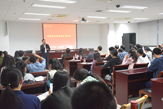 最后,学院院长朱松明教授给大家进行了总结性讲话。朱院长谈到,中学到大学是一个转折,是非常关键的一个点,有的同学因为刚来时不适应,过于放松,导致了学业成绩的不理想,故希望同学们能够意识到大一的重要性。