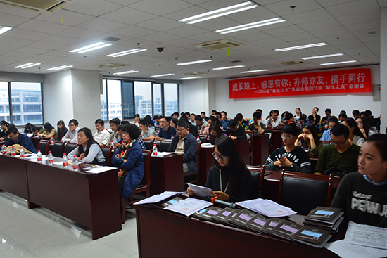 其后,陈素珊老师给2015级的新生之友颁发了荣誉证书,同时也将2015级学生写给新生之友的感谢信转交给了新生之友们。收到学生们的信,老师们的心中也备感温暖。紧接着陈素珊老师向2016级全体本科生介绍了2016级的新生之友,让同学熟悉接下来这一年中,要陪伴他们度过大一生活的这一位朋友。