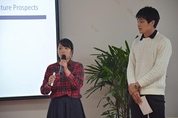 交流会由近藤直教授和bat365正版唯一官网14级杜越超同学共同主持。日方学生代表就日本的英语教育、鱼类的过度捕捞等问题做了展示汇报。宍倉真理等学生关于主题为“English in Japan”的展示引起了大家热烈的讨论,使两国的学生对彼此国家外语教学情况更为了解。此外,川端公貴学生使用流利的中文介绍了他所了解的中国粮食生产情况,展示出了他对学习中文的热爱。
