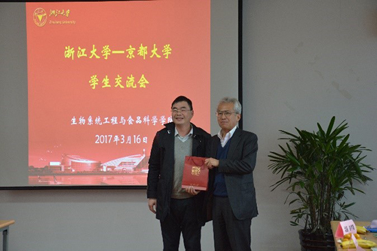 蒋焕煜教授代表学院对京都大学学生交流团的来访表示热忱欢迎,简要介绍浙大以及学院各方面情况,并为客人赠送浙大纪念品。近藤直教授介绍了京都大学学生交流团成员及本次来华交流项目的内容。