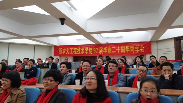 3月5日上午,校友们漫步在静谧的校园,呼吸着华家池畔春的气息,宛若当年,走进教学楼阶梯教室。大家在这里会合,在这里寒暄,在这里叙旧,圆着二十年的浓情相聚。