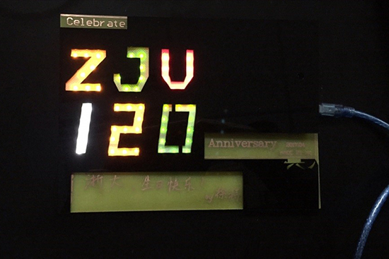 百廿校庆,全球同庆。浙大紧锣密鼓推出了校庆主题系列活动,与此同时,五湖四海的浙大学子也纷纷以自己的方式传达对母校的祝愿。校园内到处洋溢着校庆即将到来的喜悦,校门口的求是鹰LED彩灯更是吸引了无数的师生和游客拍照留念。一群来自生物系统工程与食品科学学院的学子们看到此情此景,除了感慨彩灯的绚丽多彩之外,更是萌生了DIY炫酷彩灯的念头。于是,学生们结合在叶尊忠老师的《电子线路应用综合实验》课程中所学的知识和技能,个个施展浑身解数,在实验室纯手工精心打造出一件件独一无二的作品,以自己独特的方式庆祝学校生日。