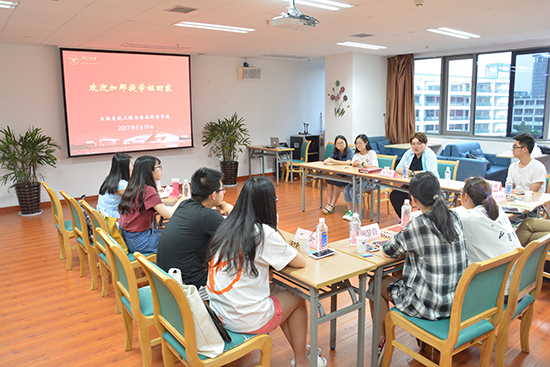 学院辅导员张云飞主持交流会。本科生屠一昕、张天棋、庄明伟、金洛熠、张艳雯等参与交流。