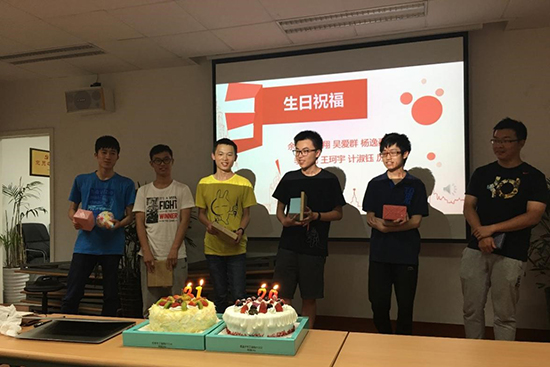 集体生日会环节,班团委为大家献上了班会惊喜——集体庆生会。在1到5月间生日的季柏民、王珂宇、王翔翔、杨逸豪、计淑钰、厉倚豪、吴爱群、崔逸等9位同学分别收到了神秘生日礼物。寿星们表达了自己的喜悦之情并为同学们切好蛋糕,大家一同品尝,家的感觉油然而生。