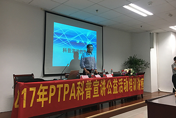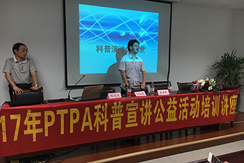 传承求是精神,心系国计民生;发挥专业特长,聚焦食品安全。历经风雨十五载,浙江大学生工食品学院2017PTPA科普公益宣讲活动即将拉开帷幕。为进一步提高志愿者的科普宣讲水平,5月27日晚,杭州市科学技术协会陈福民老师和农夫山泉有限公司科学法规事务部张悦炜老师对报名的志愿者进行培训。杭州市科协的多位领导,以及学院食品营养系沈立荣教授也莅临现场指导。