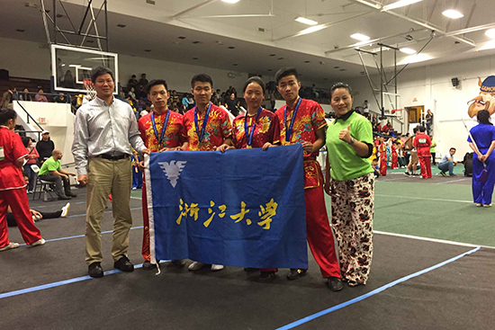 近期,浙江大学武术队受洛杉矶少林武术中心邀请,参加第十二届洛杉矶国际武术比赛。bat365正版唯一官网农工1502班朱晓天同学经过选拔,入选浙江大学代表队,代表学校参加了此次比赛。朱晓天同学积极备训,刻苦训练,敢于争先,获得男子长器械银牌和男子传统南拳铜牌,展现了生工学子良好的精神风貌!