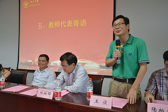 系主任、毕业班班主任依次寄语毕业生。王俊老师告诉同学们要以“浙大人”为荣,在学习知识之外,要学习做事的方法,才能成就一番事业。陆柏益老师表达对大家顺利毕业祝贺的同时,难以抑制对同学们的依依不舍之情。陈卫老师结合用心制作的PPT,细数了同学们四年的点滴,眼神中饱含着对同学们的深情,表达出对同学们扬帆远航的祝福。