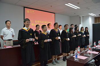 典礼开始,齐唱国歌后,学院党委书记楼锡锦老师宣读毕业生名单及优秀毕业生名单,各位老师为优秀毕业生颁发证书,并向毕业生代表赠送学院精心准备的毕业纪念品。