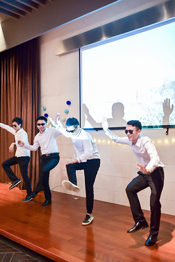 其后的篇章中,食品专业王菁与石双双的合唱《咖喱咖喱》青春活泼,生工专业黄立夏与郭晗的《黄种人》豪迈自信,生工1301和1302班的同学的Seve舞蹈,更是激情洋溢,热情似火,使晚会迎来了一个小高潮。