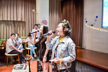 聚光灯亮起,节目纷呈。求是食品1301班同学表演的歌曲串烧,他们以朝气蓬勃的班歌《食为天》开场,句句歌词由谭博文同学自创,“硬骨铁肩担起道义,矢志传承与延伸,燃烧吧绽放吧如火焰如花青春”,淋漓尽致地了浙大生工食品学院人的意气风发与责任担当,充分调动了晚会的氛围。