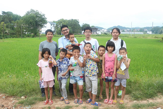 (辅导员带着同学们看望暑期做来料加工的孩子,并做相关调研)