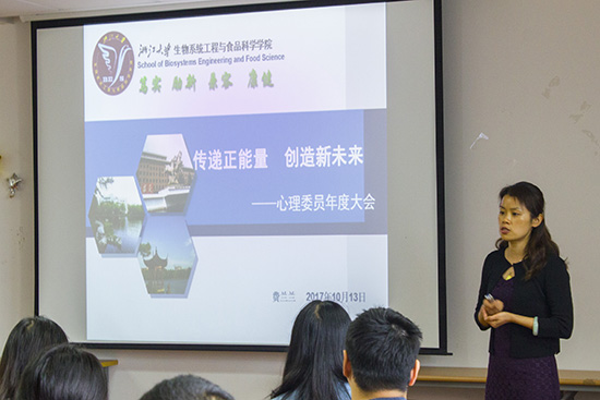 2017年10月13日中午,2016-2017秋冬学期生工食品学院心理委员大会暨学期心理工作总结表彰会于农生环D422举行。学院党委副书记费兰兰老师,团委书记、研究生辅导员陈晶妍老师,团委副书记、本科生辅导员张云飞老师出席,学院全体本硕博各班心理委员与会。