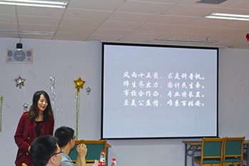 随着一张张感人的照片,吴怡德同学带领大家一起走进了辛苦而又快乐的江西管村支教生活。生工食品学子为管村孩子们辛苦备课的身影,大手牵小手一起做手工时绽放的笑容,乡村生活的不易与艰辛……这些令人动容。他最后分享到,提支教不仅要提前做好知识上的准备,也要有一颗为人师的责任心,更有吃苦耐劳的心理准备。团队是一群人的战斗,凡事不要忘了理解和沟通。