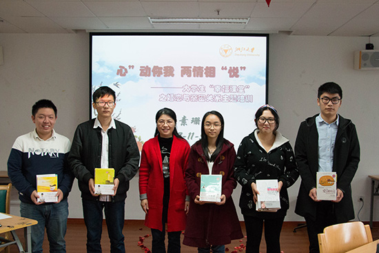 2017年11月5日上午,浙江大学“心动你我,两情相‘悦’”——大学生“幸福课堂”之婚恋与亲密关系主题团辅培训在农生环D422举行。学院原党委副书记、人事处副处长陈素珊老师受邀为全体学员带来一场寻找未知自己、感知亲密关系、树立正确婚恋观的心灵之旅。