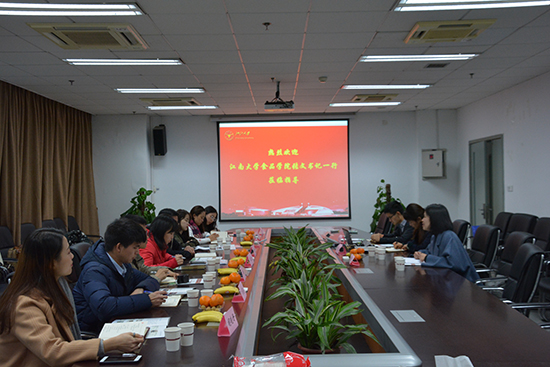 费兰兰老师对江南大学食品学院一行的到来表示欢迎。随后她从学生党建、研究生管理、创新创业、学风建设、就业指导、心理健康教育等维度全面介绍了学院的思政工作。邱慧老师专题分享了农学院研究生党建的具体做法和思考。