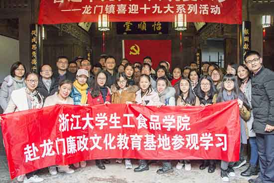 为深入学习贯彻党的十九大精神,推进“两学一做”学习教育常态化制度化,进一步强化党风廉政意识,传承良好家风,12月15日下午,生工食品学院组织纪委委员、教工党支部书记、研究所负责人、系负责人、全体机关工作人员和学生党员骨干前往浙江省廉政文化教育基地——杭州富阳区龙门古镇开展红色教育主题活动。