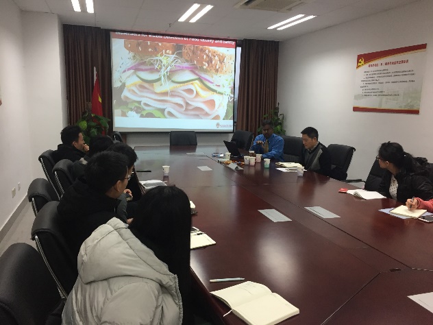 Gunasekaran教授在题为“Biosensors for Visible Detection of Food Quality and Safety”的报告中详细介绍了威斯康星大学和Gunasekaran教授本人在可转换的双功能连接器(switchable bifunctional linker,SBL)及使用比色法与电化学方法检测重金属离子等方面的研究历程,及其在快速比色传感技术可在不到30分钟的时间内简便且高灵敏度地检测低浓度致病菌等方面的最新研究成果。报告后,在场师生针对Gunasekaran教授报告的内容纷纷向Gunasekaran教授提问和请教,现场交流氛围浓厚热烈。