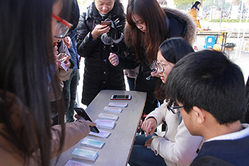 食品加热时的浓郁香味吸引着人流。虽然已入冬,三家社团以及前来品尝美食的师生无不荡漾出幸福的笑容。不同摊位在社团干事灵巧的双手下为同学们呈现出不同的美食,入口即化的糕点、酸辣爽口的凉皮、暖心香甜的西米,吸引着文广往来的师生驻足流连,一时间热闹非凡,活动现场洋溢着品尝美食的欢乐和赞不绝口的满足。部分食品制作周期较长,但参与者兴趣依旧,不断询问制作流程和所取原料,换取食品后,纷纷拍照留念。活动现场人声鼎沸但秩序井然。