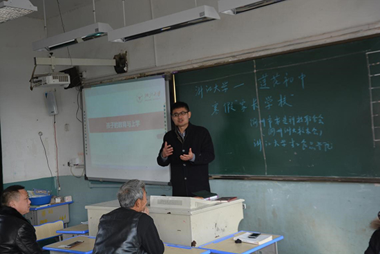 浙江大学生工食品学院赴衢州乡村举办寒假“家长学校”,旨在向农村家长朋友传递“家长好好学习,孩子天天向上”的理念,让家长们在今后的家庭教育中实现自身和孩子的共同成长。在城乡教育资源分配尚不均衡的今天,为农村孩子营造良好的成长环境,需要家长、学校和社会的共同努力。家校社共育,家国梦共圆,助力乡村振兴,我们在路上。