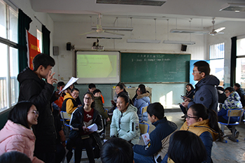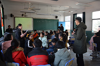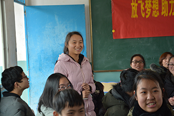 孔先国在上完课之后说:“我觉得这次的冬令营除了能更让我了解到中国农村初中的模样之外,还更让我学会怎么样去跟那些同学交流,或者说怎么样从那些害羞的孩子们当中能够吸引他们的注意力让他们不犹豫地跟我交流。我也希望告诉孩子们只要有理想,并为之努力就可以达到目标。”