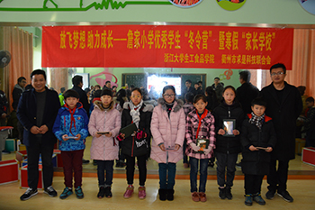 (衢州市求是科技联合会热心的浙大校友为冬令营的优秀学子颁奖)
