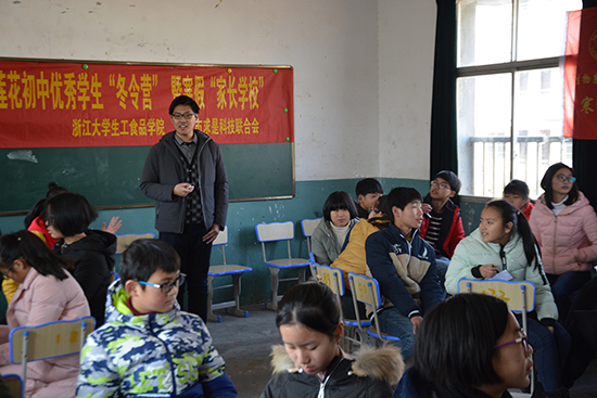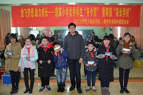 衢江莲花初中、龙游詹家小学是衢州市求是科技联合会的“求是课堂”公益活动的合作学校。衢州市求是科技联合会会长、浙江大学80级单建军校友带着热心校友全程陪同,单会长在两校的开营式上分别致辞,他动情地说,此次“冬令营”活动是联合会和浙大的在校生合作的成功硕果,是衢州市求是科技联合会“求是课堂”的系列活动之一,是浙大校友回馈地方、助力乡村发展的公益行动,是衢州浙大校友“情怀浙大 服务校友 助力衢州发展”理念的生动实践。