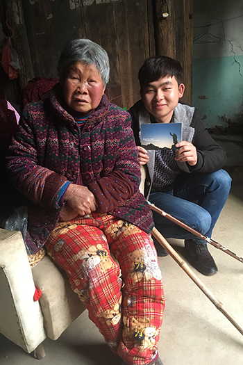 聊天期间我也顺势送了奶奶几张学校的明信片,并借此介绍上面的校园风景,有夕阳落照、夏荷盛开。不曾想,何奶奶说她还是最喜欢玉泉校区那张有毛主席像的相片。说罢,她一个劲拿着毛主席招手的明信片仔细瞧着,夸赞着伟大领袖毛主席。何奶奶现也已经儿孙满堂,只是一个人住着,她笑着说她还是喜欢一层楼的老房子,说现在农村新建的高楼的楼梯自己是爬不动了,顿时把我们逗得哈哈大笑。问起何奶奶的新年愿望,她说希望尽快腿伤好起来,能够多走动,四处看看。最后,她笑着对我说:“多活一天就是赚到一天。”
