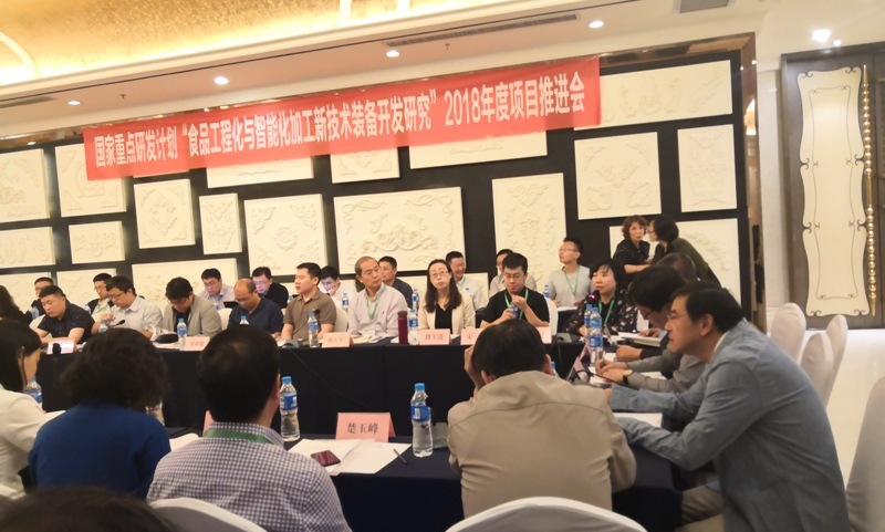为加强项目过程管理,规范项目组织实施,确保项目中期任务目标顺利完成,2018年5月28日至30日,“食品工程化与智能化加工新技术装备开发研究”项目牵头单位浙江大学在内蒙古自治区包头市召开了2018年度项目推进会。科技部中国农村技术开发中心专项主管戴炳业副处长,中国农业大学食品科学与营养工程学院胡小松教授、浙江大学农业技术推广中心主任叶兴乾教授、中国食品和包装机械工业协会楚玉峰理事长等项目咨询专家,项目负责人浙江大学刘东红教授以及各课题、研究任务负责人、项目骨干等60余人参加了会议。本次会议由包头九久科技发展有限公司承办,刘东红教授主持。
