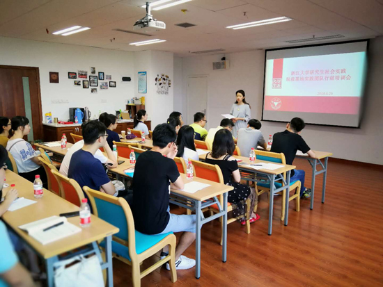 2018年6月29日,浙江大学生工食品学院社会实践院级基地实践团队行前培训会在学院会议室D422举行。行前培训由兼职辅导员胡颀主持,学院党委副书记费兰兰老师作动员讲话,学院研究生辅导员张云飞老师详细介绍了社会实践相关事宜。