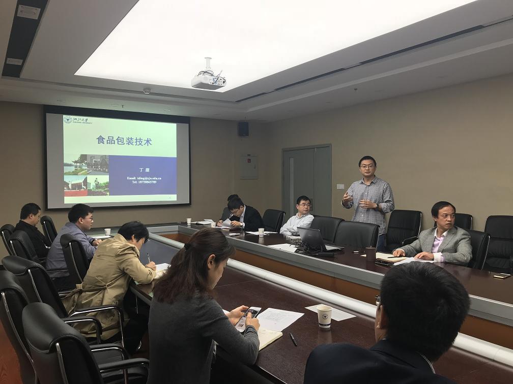 竞赛先由丁甜老师为大家展示其主讲课程食品包装技术中智能包装涉及的TTI(Time-temperature indicators,时间温度指示器)内容,从作用、原理、分类、要求、用途等方面展示了TTI。随后刘飞老师从提问“未来农场是怎样的”开始引入农业物联网体系,并以作物害虫的深度神经网络诊断识别为例介绍了人工智能在农业物联网信息感知的应用。最后李晓丽老师从什么是回归、一元线性回归分析、线性回归的统计推断、多元线性回归及其实现四个方面讲述了其主讲课程生物系统模拟中的回归分析原理及其MATLAB实现。郭鸣鸣、胡亚芹、周振江、刘羽飞四位老师观摩此次比赛。