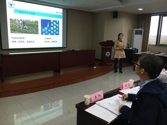 12月5日上午,生工食品学院举行第十六届挑战杯院级选拔赛。学院副院长徐惠荣老师,生工系郭希山老师、叶尊忠老师,食品系张辉老师,实验中心李阳老师出席并担任评委,校团委科技口挂职团干赵文俊和刘妍秋莅临指导,学院团委张云飞和梅玫老师老师参加。