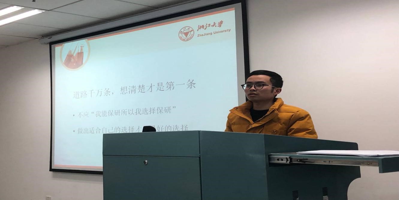 李栋学长告诉同学们:要遵循内心,不要盲从,每个人都有最适合自己的路。他从保研角度分析,明确指出保研需要从在校成绩、四六级英语成绩、综素三个方面努力,同学们表示受益匪浅。