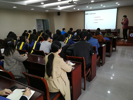 研究生辅导员张老师为毕业生们介绍了就业毕业的具体流程。关于就业手续办理,张老师向大家介绍了就业离校需要办理的相关手续及流程,在把握整体框架的同时也对开具报到证、档案管理、违约、党组织关系转移等同学们比较关心的重点问题做出了详细的解答。此外,张老师结合自身的多年学生辅导员的工作经验告诫毕业生同学们做好毕业就业相关工作的重要性。最后,张老师着重强调了毕业安全的重要性,扣好研究生阶段的最后一粒扣子。