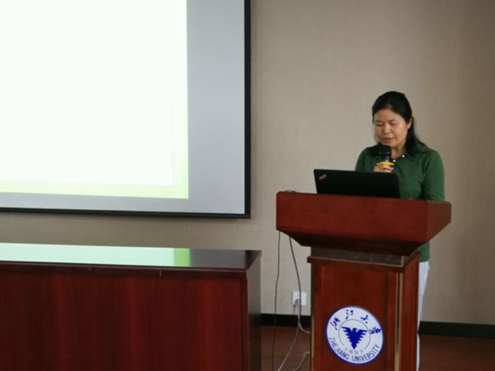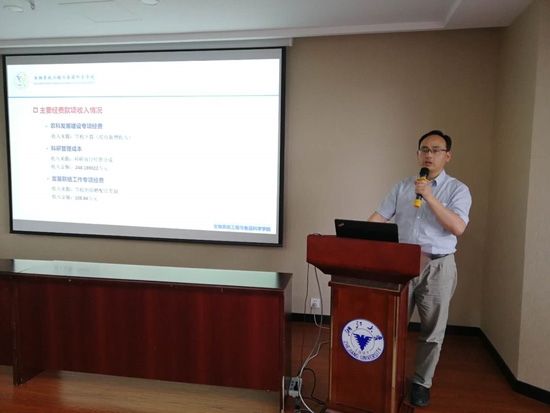 学院党政办主任唐月明老师汇报学院财务主要经费款项收支情况。唐老师用数字和表格说话,向与会代表和教师做了详细汇报。