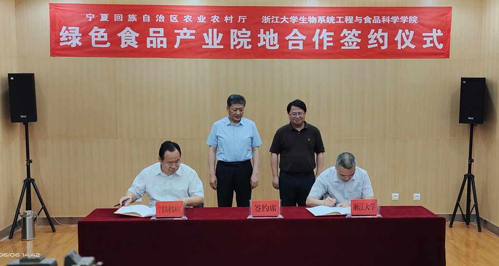 宁夏农业农村厅党组书记、厅长潘志明,副厅长王生林,厅党组成员、副厅长晁向阳,浙江大学国内合作办公室主任林伟连,生工食品学院党委书记李金林,生工食品学院副院长刘东红,新农村发展研究院副院长陈士国等宁夏及浙江大学有关方面的领导出席签约仪式。