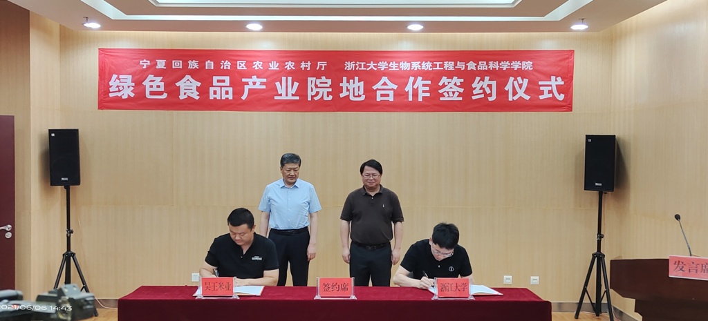 宁夏农业农村厅党组书记、厅长潘志明,副厅长王生林,厅党组成员、副厅长晁向阳,浙江大学国内合作办公室主任林伟连,生工食品学院党委书记李金林,生工食品学院副院长刘东红,新农村发展研究院副院长陈士国等宁夏及浙江大学有关方面的领导出席签约仪式。
