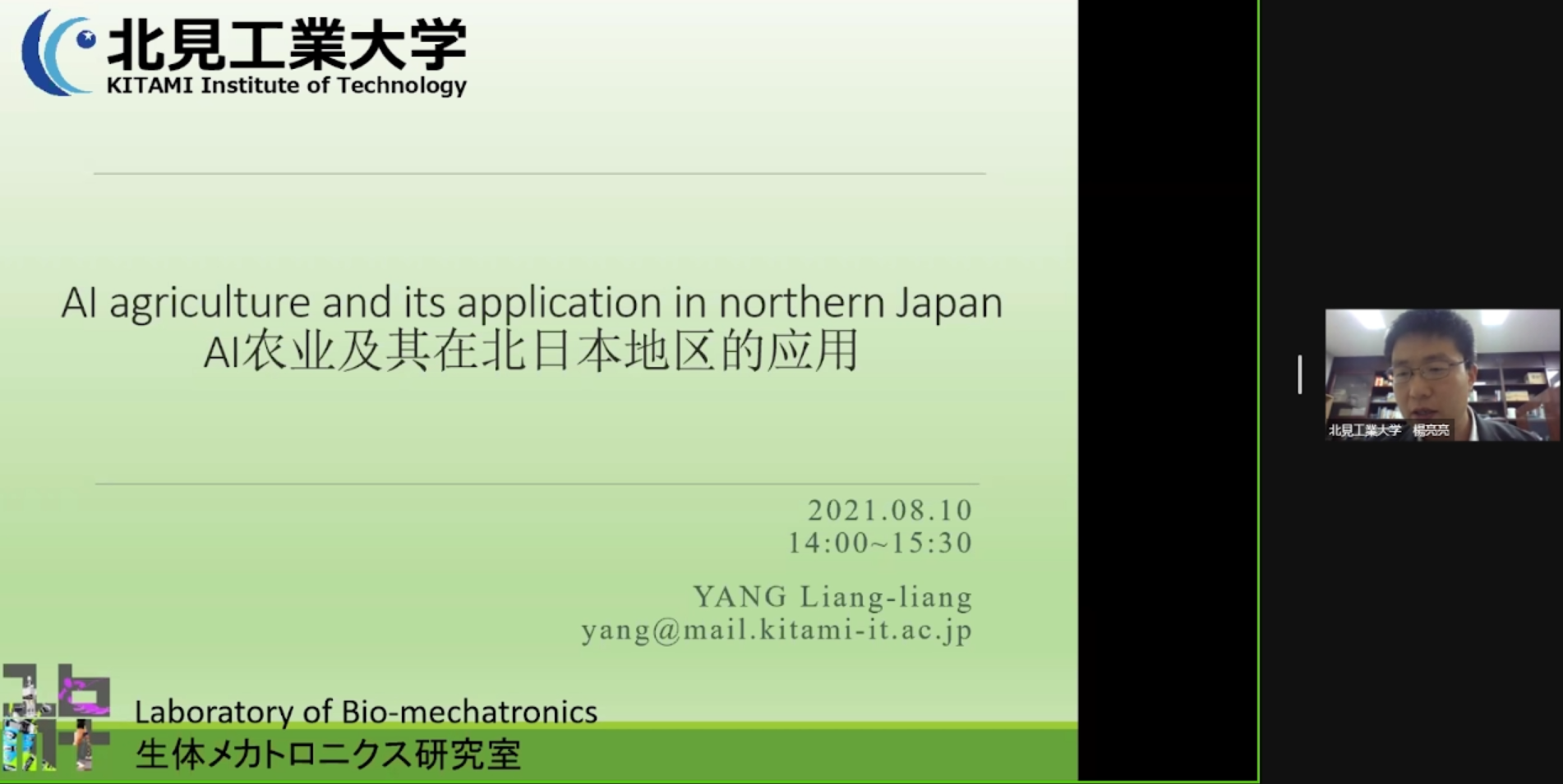 College of Biosystems Engineering and FoodScience host a series of online reports called "Digital Agriculture andFuture Food" to boost international communication. On 10th August 2021, Dr. Liangliang Yang, an assistant professor from the Laboratory ofBio-mechatronics, Kitami Institute of Technology, gave an academic reportentitled "AI Agriculture & Its Application in Northern Japan."
