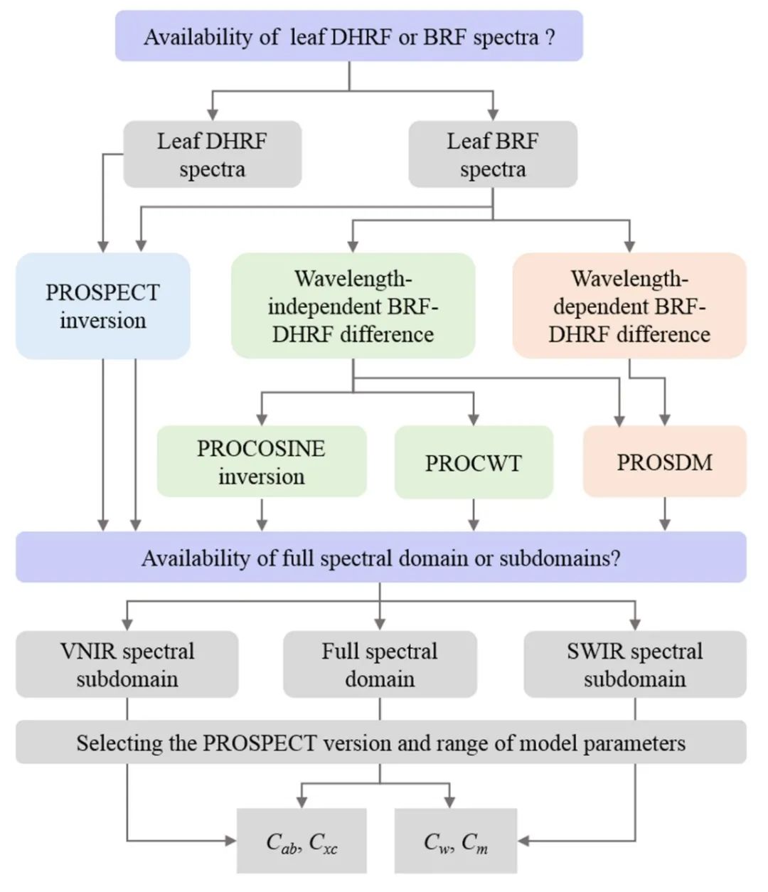 原文来源:Wan, L.; Zhang, J.; Xu, Y.; Huang, Y.; Zhou, W.; Jiang, L.; He, Y.; Cen, H. PROSDM: Applicability of prospect model coupled with spectral derivatives and similarity metrics to retrieve leaf biochemical traits from bidirectional reflectance. Remote Sensing of Environment 2021, 267, 112761.
