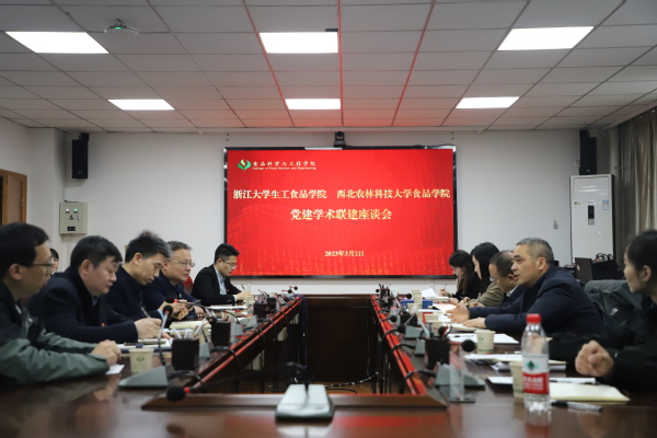 2023年3月2日下午,李金林、刘鹰带领师生赴西北农林科技大学食品科学与工程学院开展党建学术联建活动。王一清、罗自生、泮进明和梅玫一同出席。