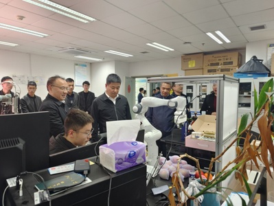 交流会结束后,胡勇春市长一行还在学院院长刘鹰、学院党委书记李金林的陪同下,考察参观了智能感官、传感器开发、机器人微纳操作、植物表型检测、智慧畜牧工程和农业空气质量、植物土壤环境安全检测、农业机器人、农业信息智能感知、微藻资源化利用与开发、农产品加工新技术装备等实验室。