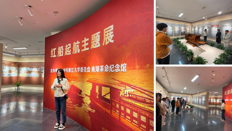 “红船起航主题展”由浙江大学和南湖革命纪念馆联合主办,以中国革命红船起航为主题,以党的初心和使命为主线,以党的发展历程为脉络,聚焦中国共产党的创建,特别是中共一大南湖会议,全面展现一百年来,中国共产党在初心使命的砥砺下,带领全国人民取得革命、建设和改革伟大胜利的光辉历程、卓越成就和宝贵经验。通过参观学习,支部党员同志们对红船精神与初心使命的内在联系、红船精神的深刻内涵和时代价值有了更加深刻的理解和领悟,真切体会到了红船精神从起航到凝聚、再到升华的过程。