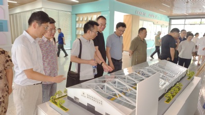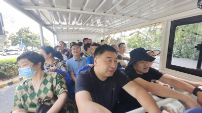 6月11日上午,校友们由学院发展联络办主任邹黎明陪同,乘坐校园观光电瓶车来到学院参观交流。在学院大楼前合影留念后,校友们来到学院一楼大厅,兴致勃勃地参观了学院科研基地与学院文化展示以及正在举行的学院科技成果展。