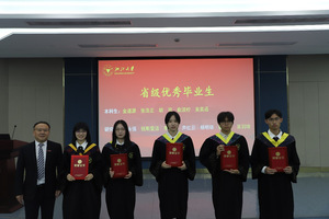 刘鹰为省级优秀毕业生、省级优秀毕业研究生、校级优秀毕业生、校级优秀毕业研究生、校友联络员、本科生十佳论文获得者颁发证书,王一清为选调生代表颁发荣誉证书,向毕业生代表赠送纪念品。