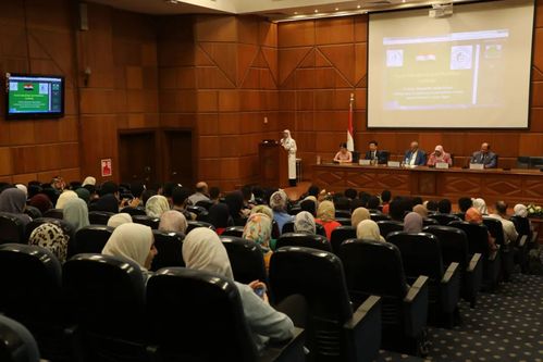 当天下午,实践团成员参与了以“研究与发展检测、提取和处理技术”为主题的研讨会。该研讨会由埃及国家研究中心营养研究所主办。bat365正版唯一官网何勇教授、李晓丽教授、副研究员冯旭萍、埃及国家研究中心艾哈迈德·M·阿卜杜勒-萨拉姆(Ahmed M. Abd El-Salam)教授、朵哈·穆罕默德(Doha A.Mohamed)教授以及来自中心的100余名师生参加了此次研讨会。