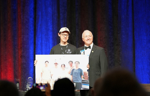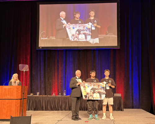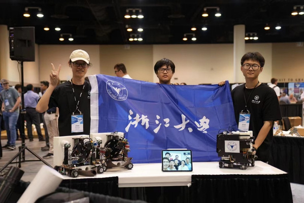 最终,在队员们的精诚合作下,浙江大学代表队一举斩获本届国际竞赛的高级组冠军、标准组亚军和Best Report奖三项大奖。领奖时,为了让国内队员共同分享这个高光时刻,参赛队员拿出精心准备的团队大合照上台合影留念,颁奖嘉宾和与会观众给予热烈掌声。