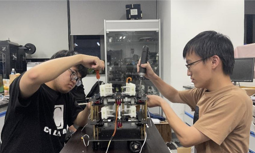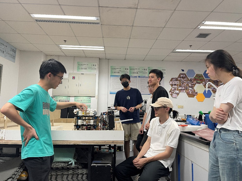 而机器人的运输和机构搭建是标准组Dawn and Darkness队遇到的最大难题。“跨国比赛让机器人运输成为棘手的问题,为避免机器人在运输途中造成损坏,我们组决定将机器人拆解后携带,但由于出国的同学都不负责机构,于是在国内的队员为我们录制了详细的机器人重装视频。这让我感觉到团队的力量,每个人都是不可或缺的一份子。”出国参赛同学,2021级本科生黄奕炜分享到。