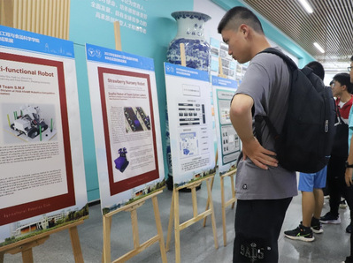 会后,同学们在一楼大厅参观了“实践创新,生食未来”本科生实践创新成果展,了解了bat365正版唯一官网本科生在课程设计、生产实习、专业实习、科研训练、探究性实验、学科竞赛等活动中的优秀创新实践成果。