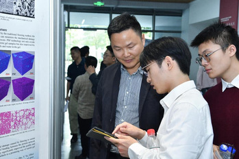 开幕式结束后,与会嘉宾参观了成果展览,并与墙报作者展开热烈的交流讨论。