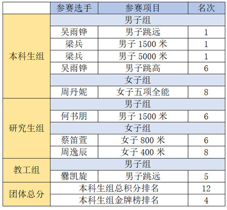 至此,2023年校运会完美收官,热烈祝贺生工食品学院获得了本科生组金牌榜并列第四的优异成绩,并在开幕式方阵中荣获二等奖!同时,衷心感谢参与本次校运会的所有运动员、学生骨干与志愿者,也期待生工食品学院能够继续勇往直前,再创佳绩!